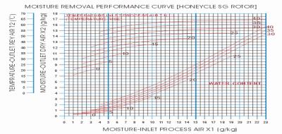 试算首先确定一个除湿风量,然后确定转轮进出口的空气含湿量,通过风量和湿差便可计算出设备实际的除湿能力,然后与房间的湿负荷进行大小比较,如除湿能力大于房间湿负荷,则说明设备规格能满足除湿的要求。一般除湿机的富裕系数按照15%~20%来考虑。