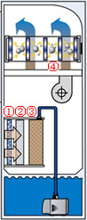 1.污浊的空气进入粗效过滤器①,粒径在10微米以上的颗粒物被拦截。