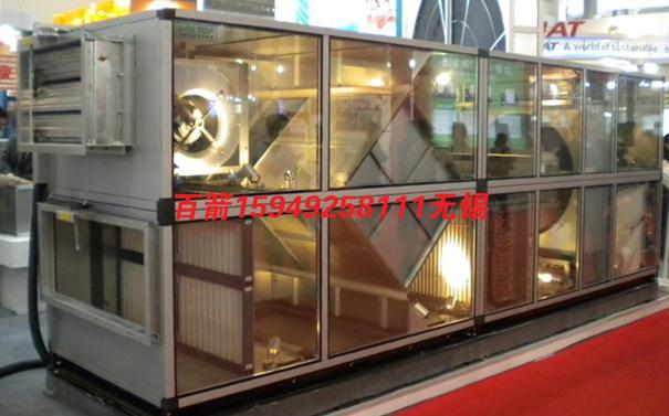 能量回收通风机组是有板式热交换器、送风排风风机、过滤器、箱体、调节阀等组成,板热交换器由铝合金和吸湿材料构成,处理风量从5000到120000m3/h,共有20个标准规格可供选择。