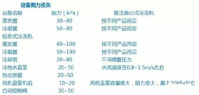 hd/hf值,小型住宅建筑在1~1.5之间;大型高层建筑在0.5~1之间;远距离输送管道(集中供冷)在0.2~0.6之间。设备阻力损失如下:(2)冷却水管路系统
