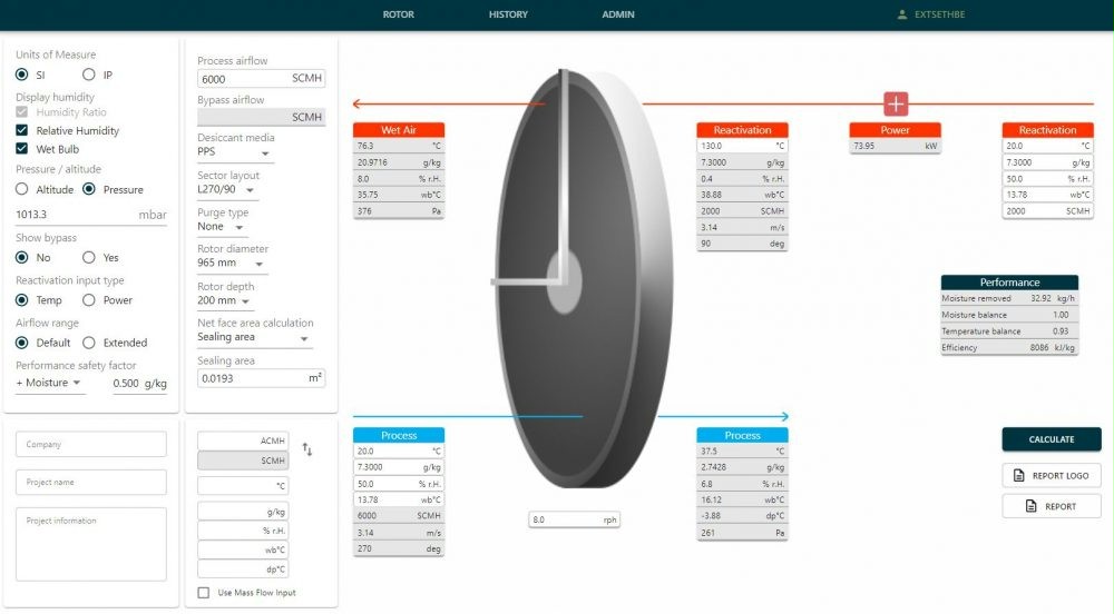 由 PROFLUTE 公司提供的计算机软件可以非常容易地计算出转轮的除湿量、阻力以及其它一些特性参数,从而协助客户根据不同的除湿要求选择合适的转轮。