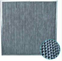 耐高温高效过滤器采用超细玻璃纤维滤纸为滤材,经密摺而成。密摺的滤纸由铝箔隔板做成的小插件间隔,保持流畅通道,外框为镀锌板、不锈钢板或铝合金型材,用耐高温密封胶密封。